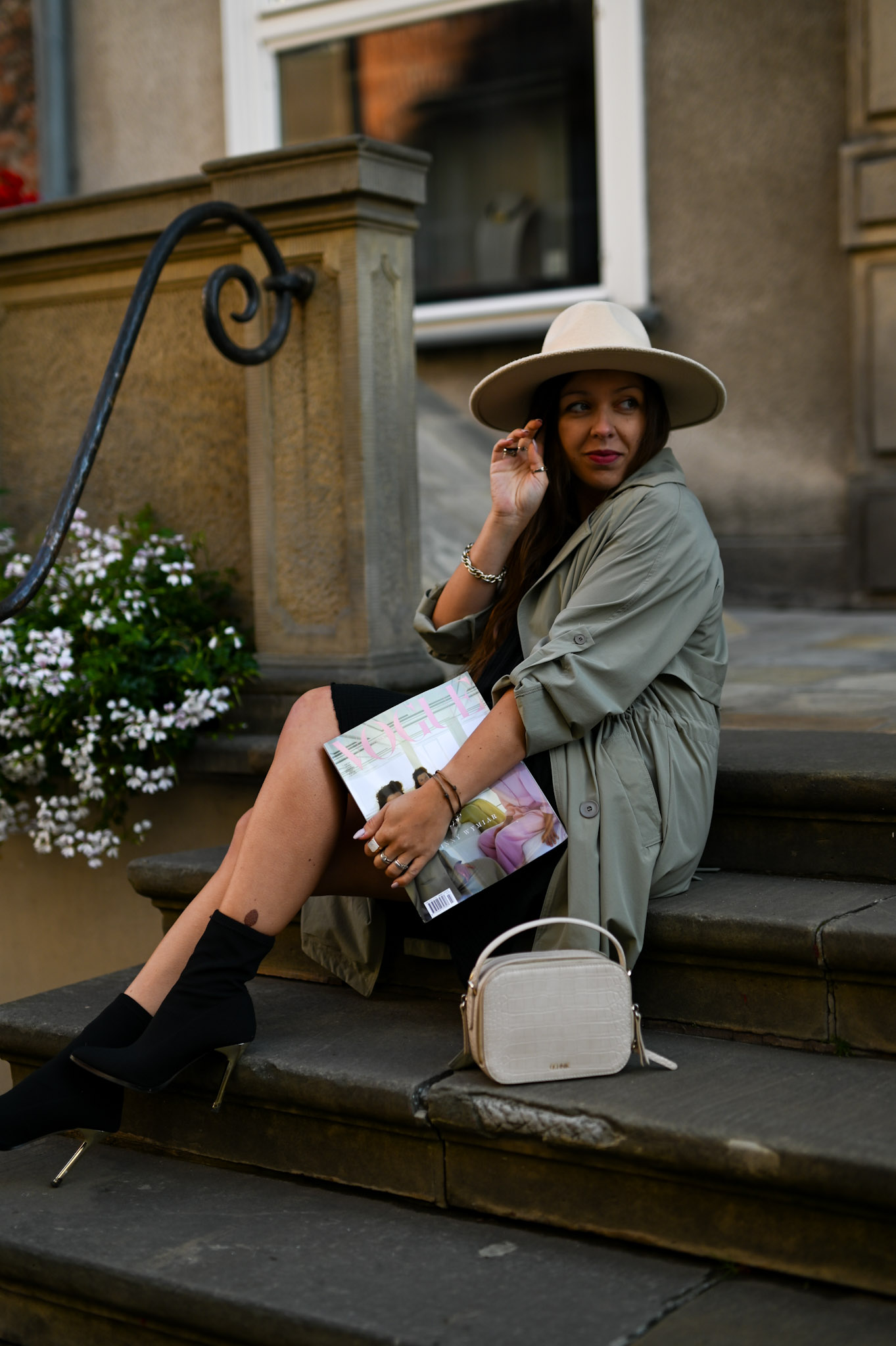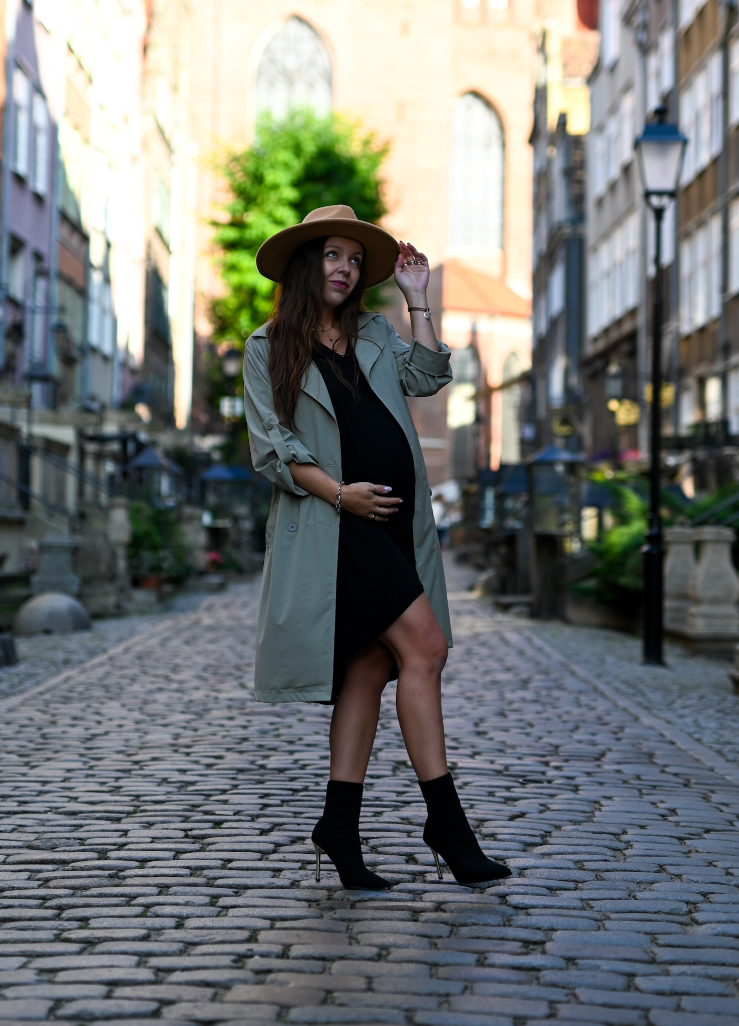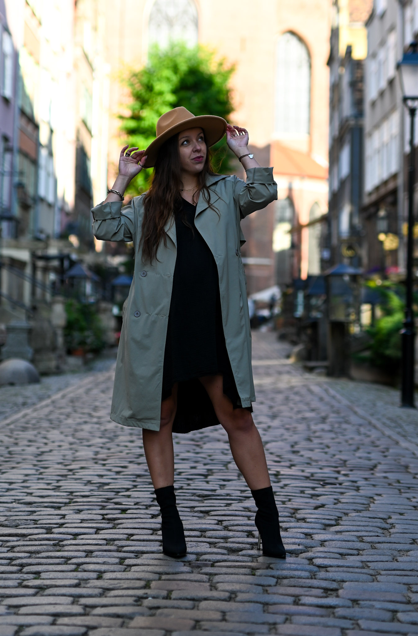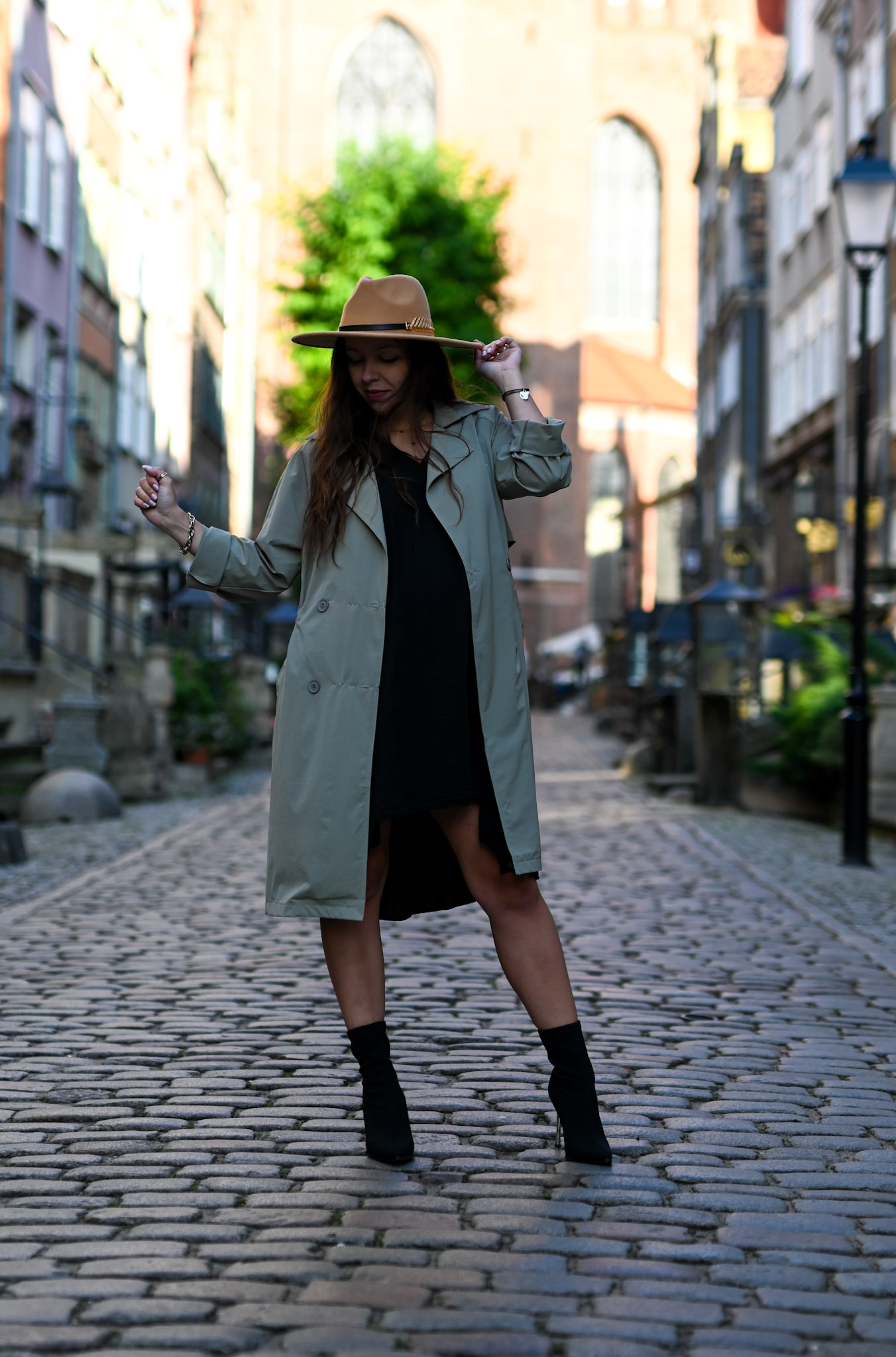 Długi trencz w pięknym przygaszonym kolorze khaki. Płaszczyk świetnie sprawdzi się jako narzutka na jesienne dni. Model ten jest zapinany na dwurzędowe guziki, posiada długie rękawy ale pięknie prezentuje się z podwiniętym rękawami 3/4 (posiada dodatkowy guziczek przy rękawie). Płaszczyk ma wiązanie w talii oraz dwie kieszenie po bokach. Wiązanie możemy ściągnąć z tyłu lub zawiązać z przodu aby podkreślić talię.