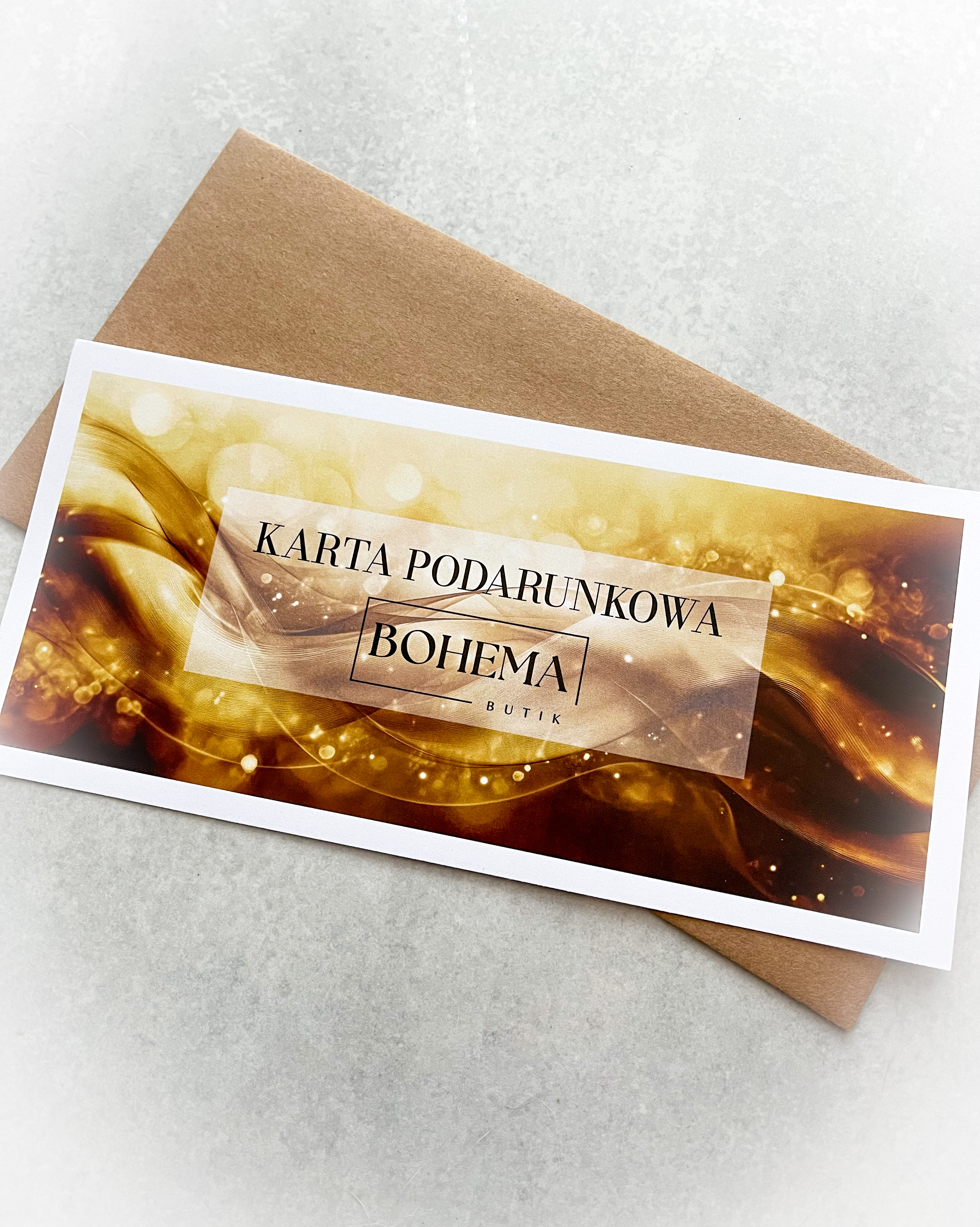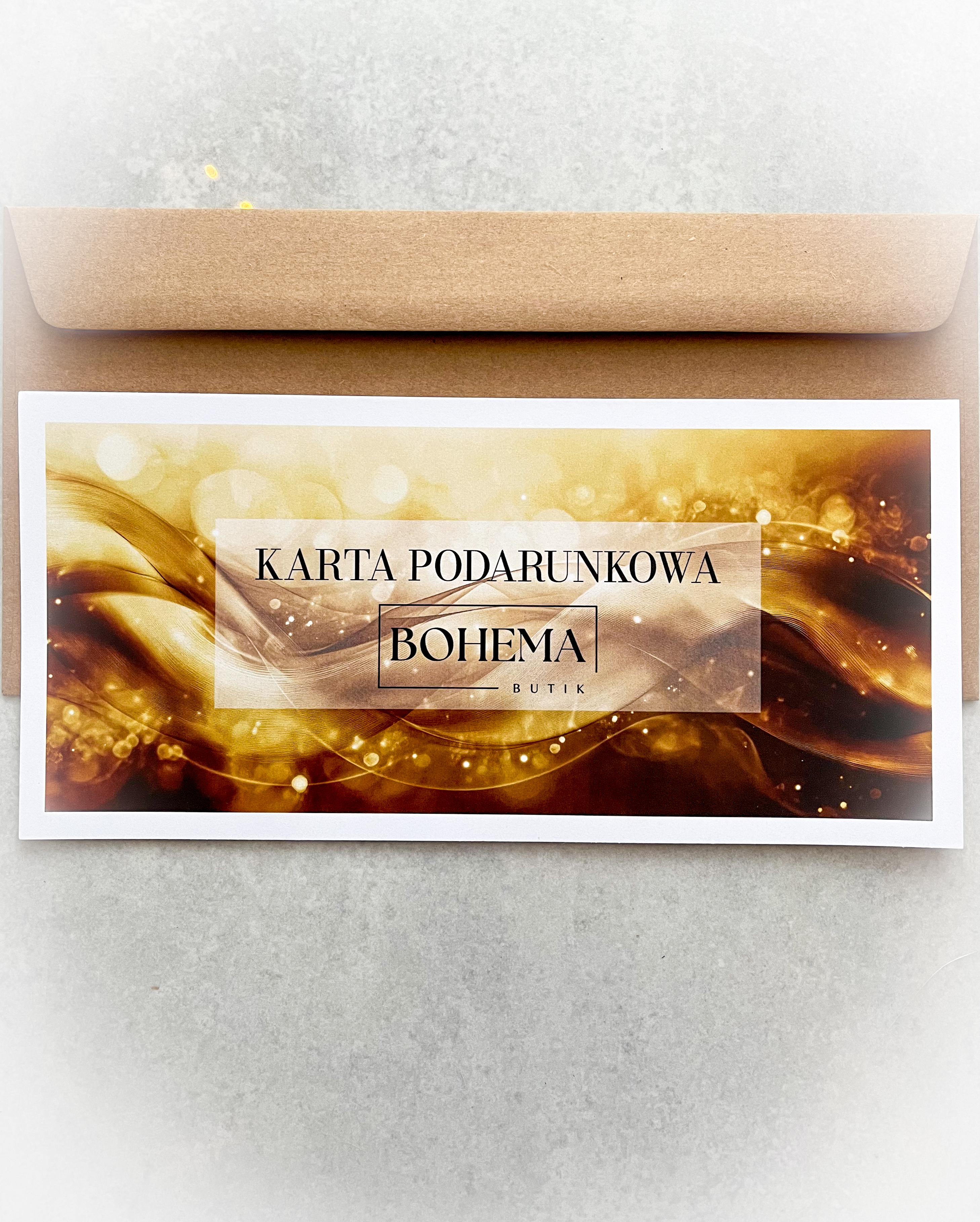 Karta do wykorzystania na stronie internetowej www.bohemabutik.pl. Ważność karty – rok od daty zamówienia.