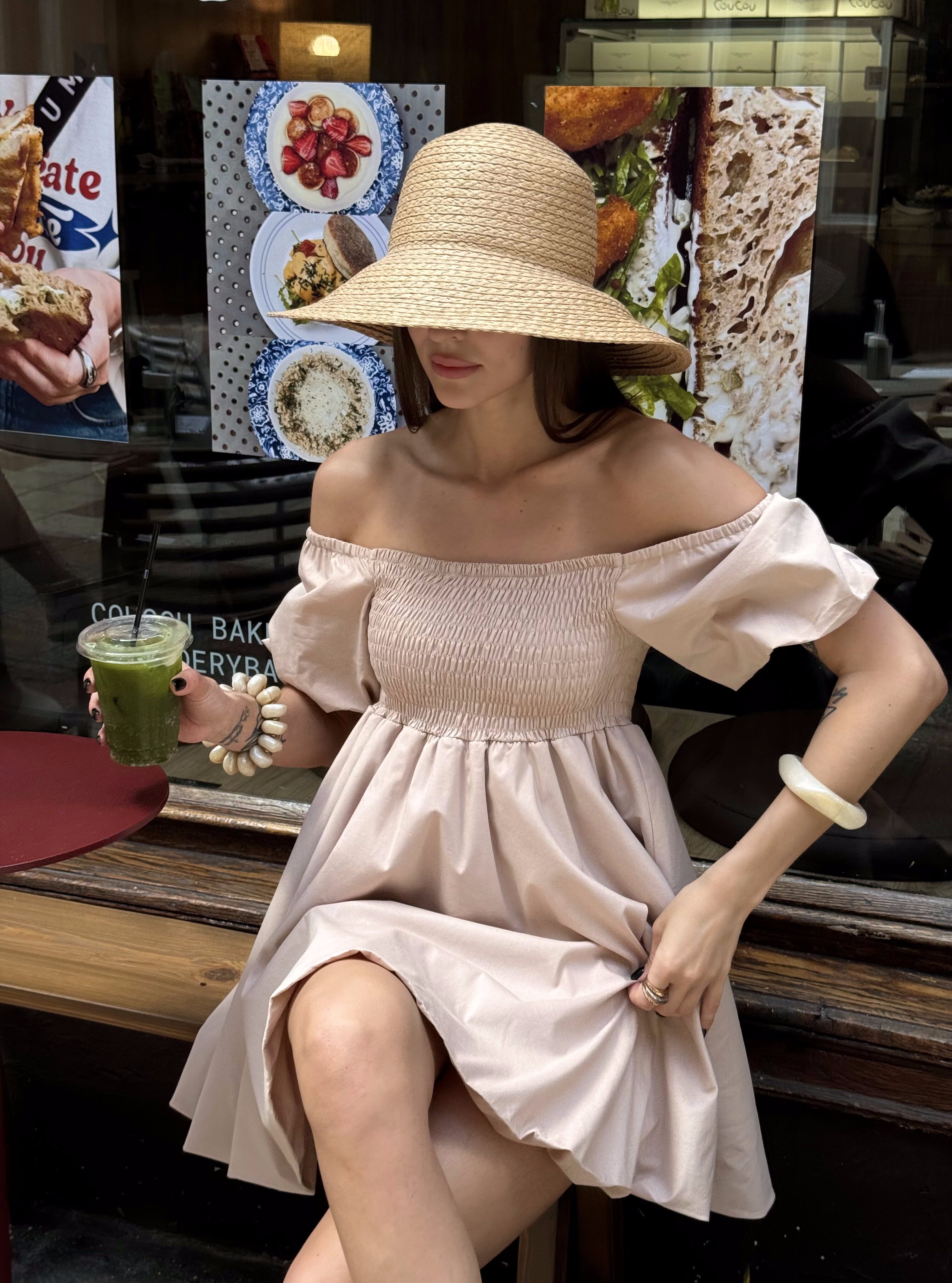 Oto przepiękna koktajlowa sukienka w odcieniu piaskowego beżu. SANDY to kwintesencja letniej lekkości, która pięknie eksponuje ramiona dzięki dekoltowi typu hiszpanka.