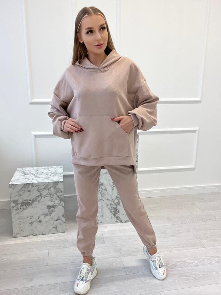To nie jest kolejny komplet dresowy ;). POLSKIEJ produkcji komplet wykonany z delikatnego zamszu, wyjątkowa jakość materiału. Bardzo miły w dotyku i zapewniający absolutną wygodę. Bluza jest luźniejsza, trochę dłuższa z tyłu. Komplet wykonany wysokiej jakości bawełny.