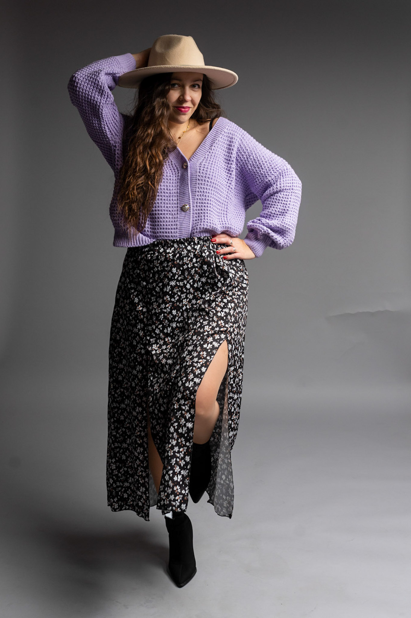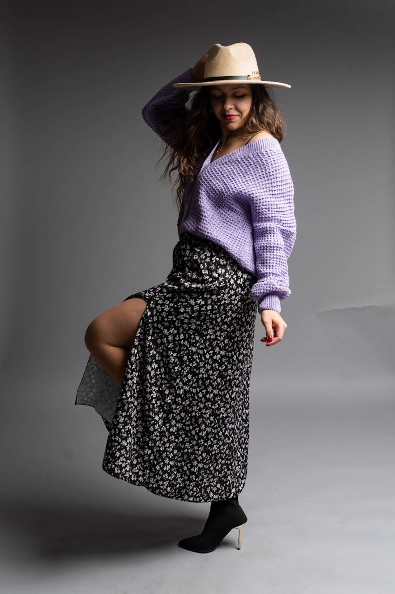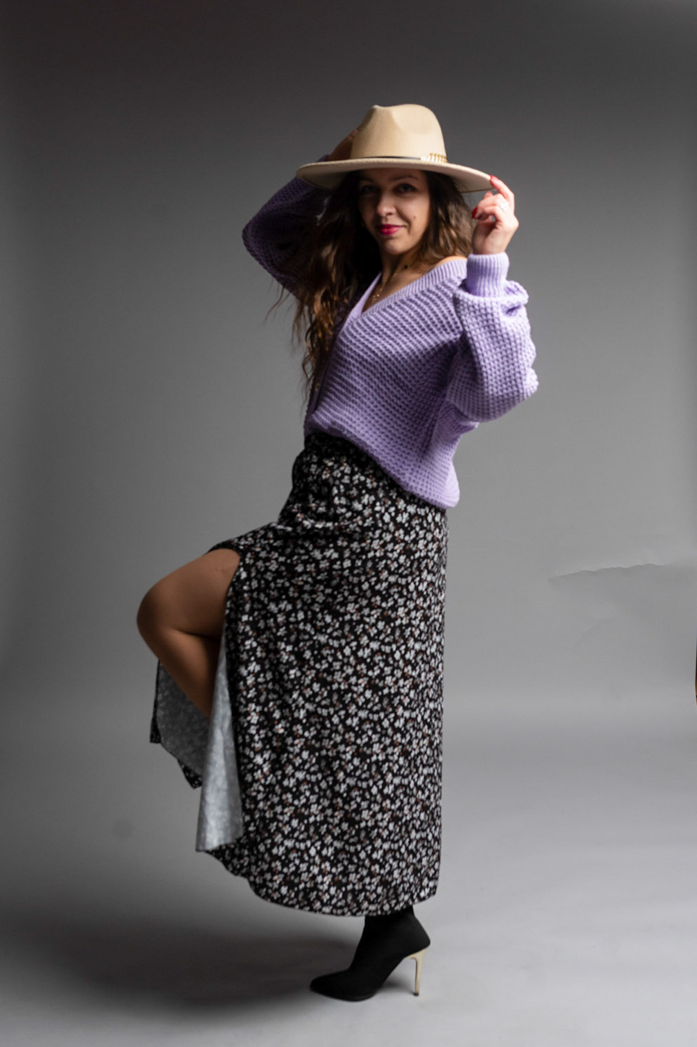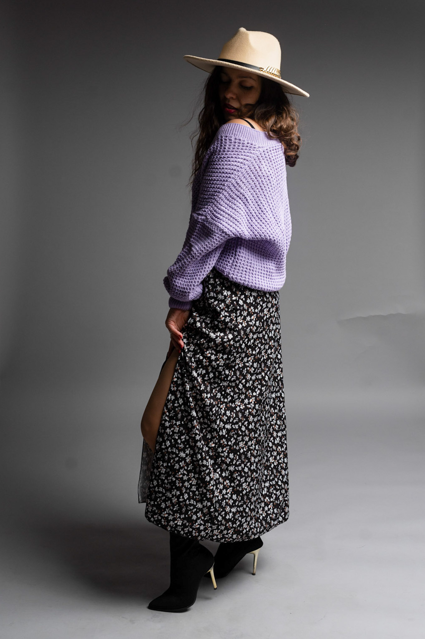 Zwiewna spódnica długości Midi z dwoma rozporkami pięknie eksponującymi nogi i zapewniającymi wygodę. Posiada delikatny materiał w kwiatowym princie. Spódnica posiada gumkę w talii dzięki czemu pięknie będzie się układać na sylwetkach od rozmiaru S do L.