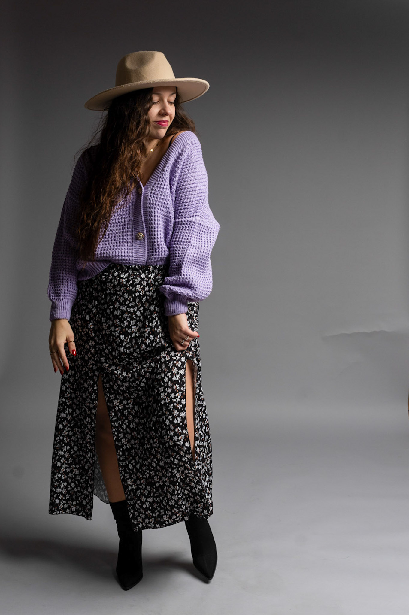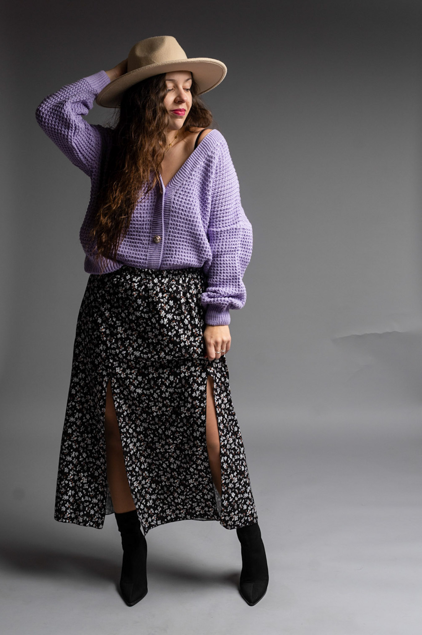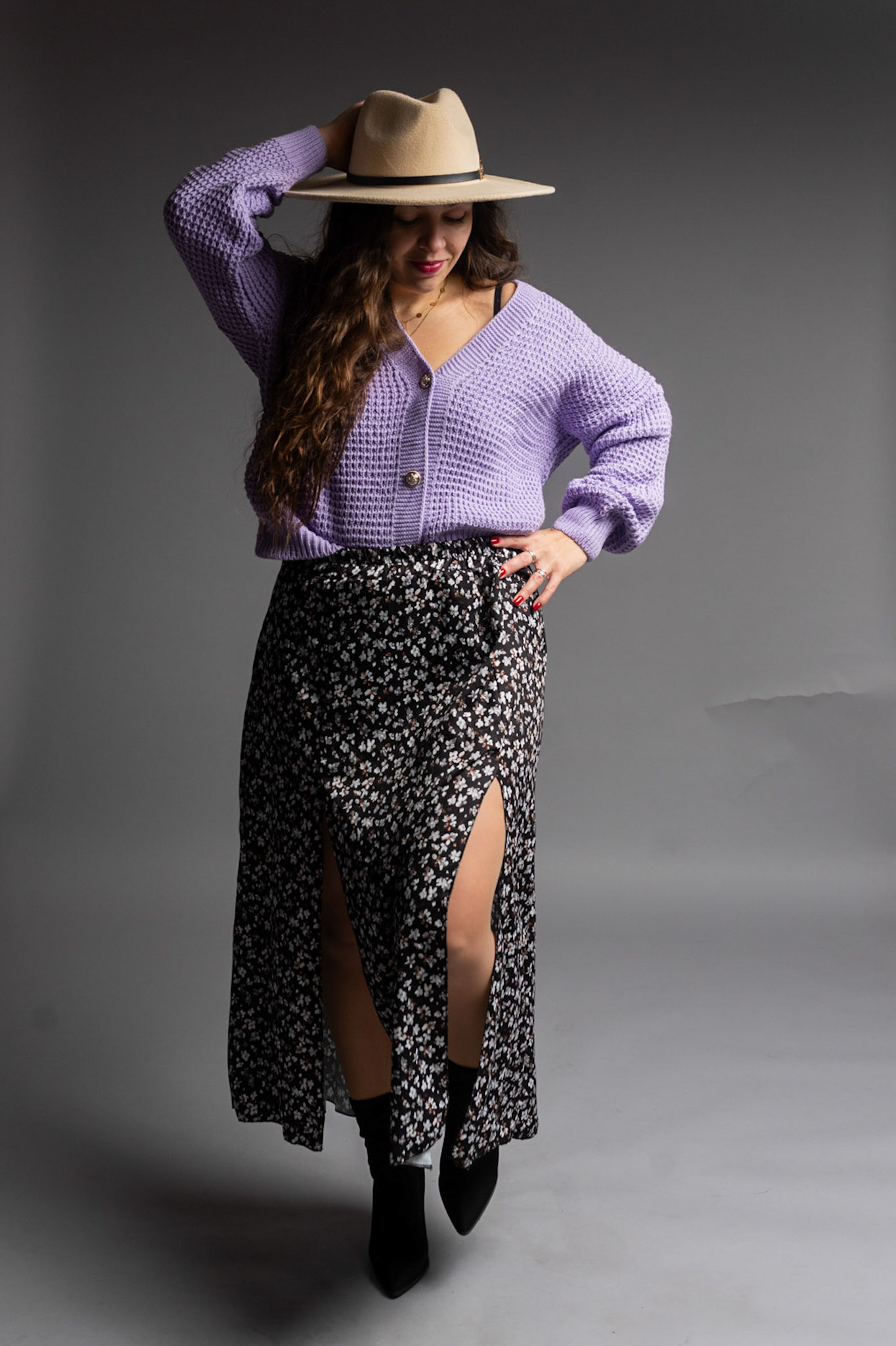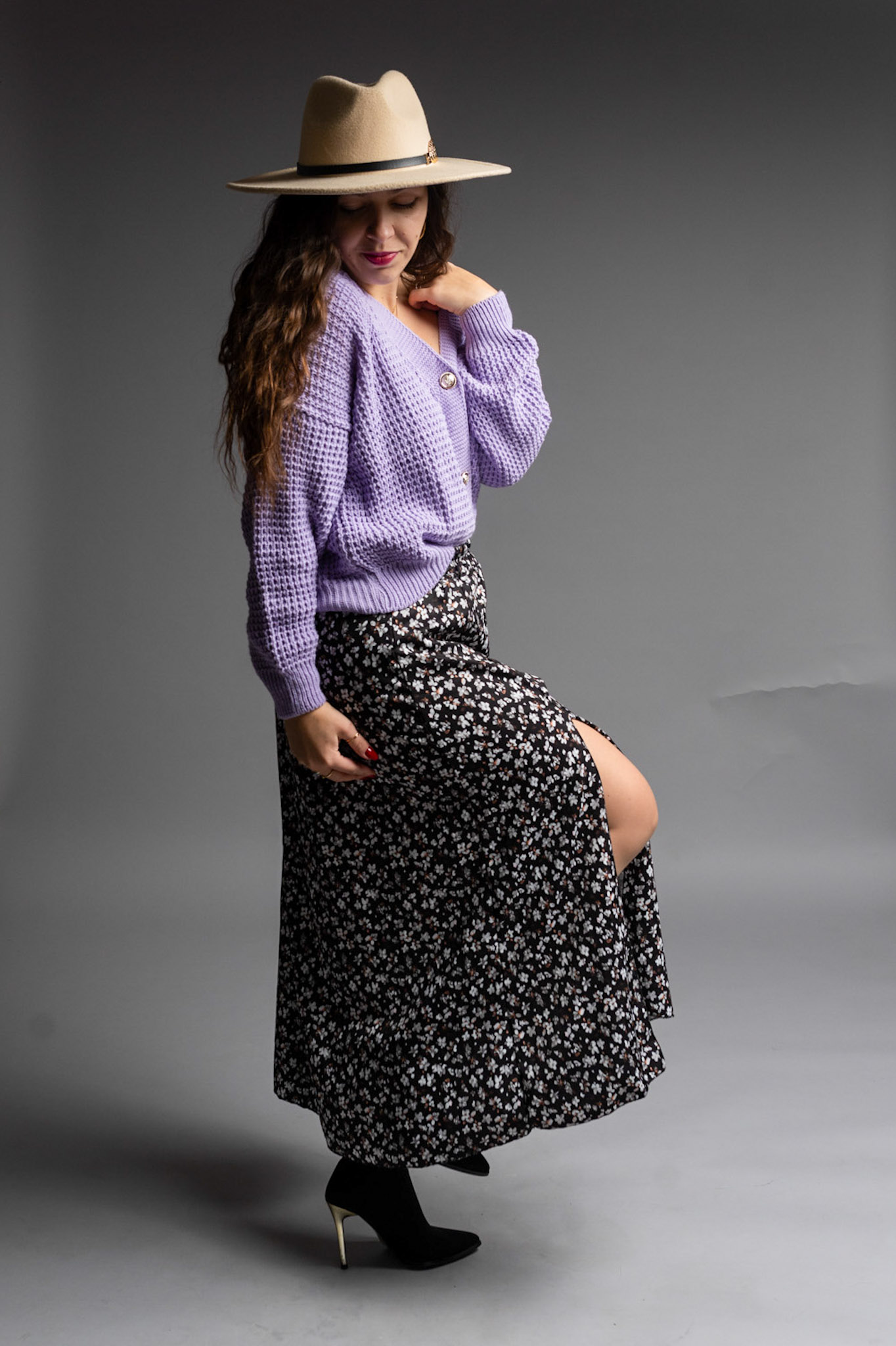 Zwiewna spódnica długości Midi z dwoma rozporkami pięknie eksponującymi nogi i zapewniającymi wygodę. Posiada delikatny materiał w kwiatowym princie. Spódnica posiada gumkę w talii dzięki czemu pięknie będzie się układać na sylwetkach od rozmiaru S do L.