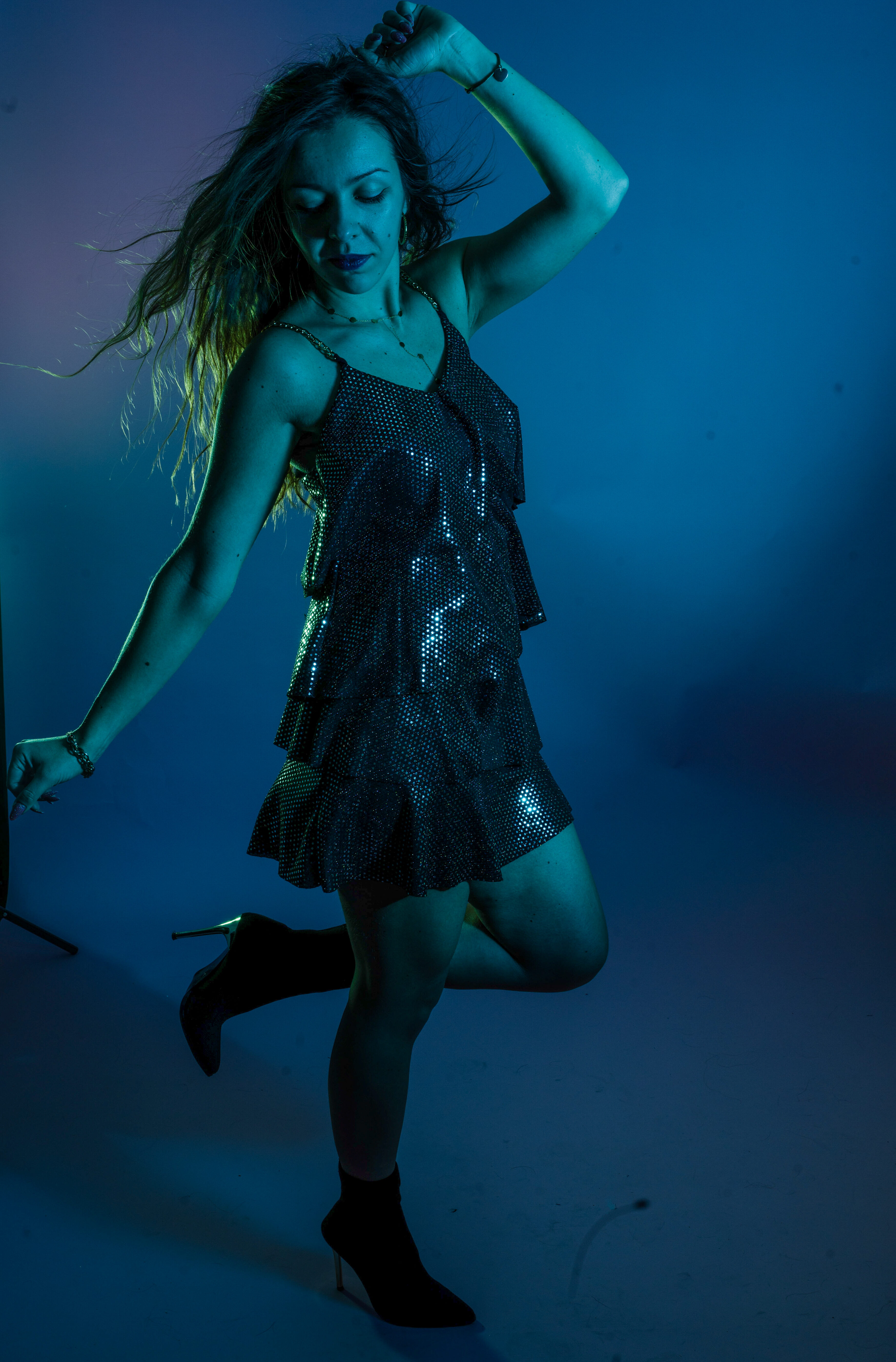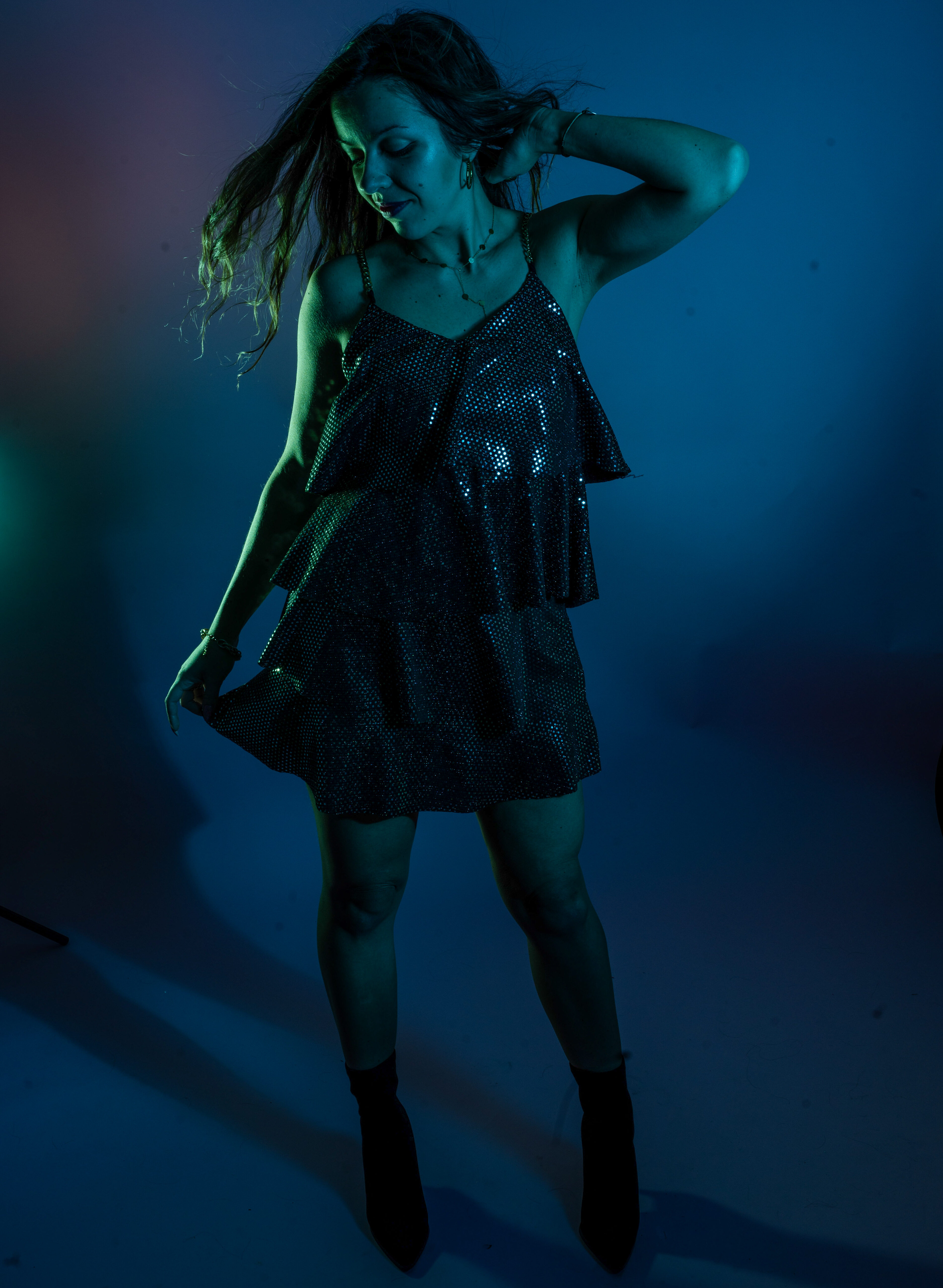 Niesamowicie efektowna a zarazem bardzo wygodna sukienka na imprezę na której chciałabyś zabłysnąć. Sukieneczka wykonana z elastycznego materiału pokrytego połyskującymi drobinkami, posiada falbanki oraz ramiączka wykonane z łańcuszka w złotym kolorze.